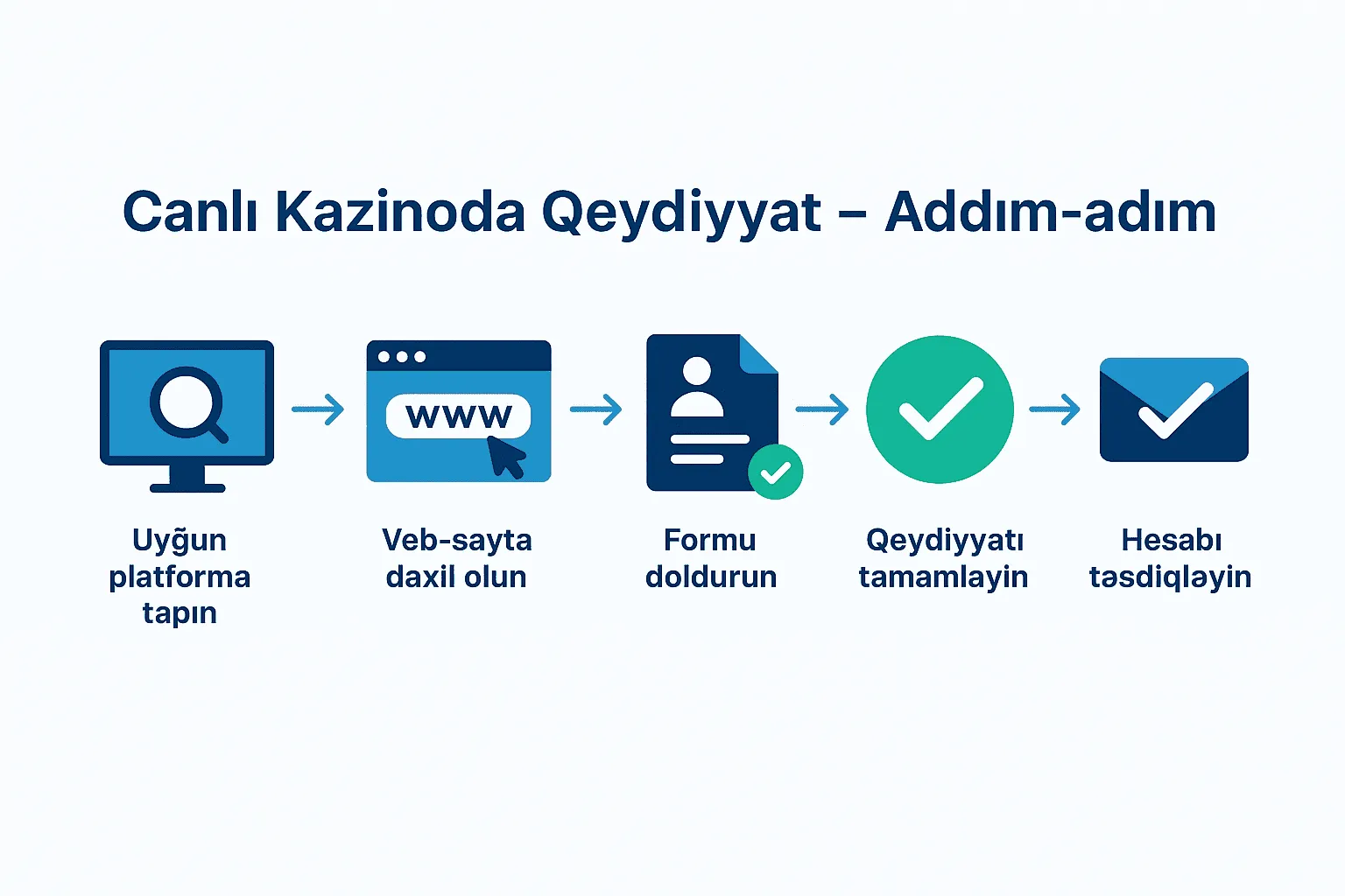 Hər hansı bir canlı kazino oyununu oynamaq üçün tələb olunan ilk şey, əlbəttə ki, qeydiyyatdan keçməkdir. Hər platforma fərqli qeydiyyat prosesinə sahib olsa da, ümumilikdə proses istifadəçinin rahatlığı üçün sadə və sürətli olur. Aşağıda nümunə üçün bir canlı casino saytında hesab yaratmaq prosesi addım-addım izah olunub: